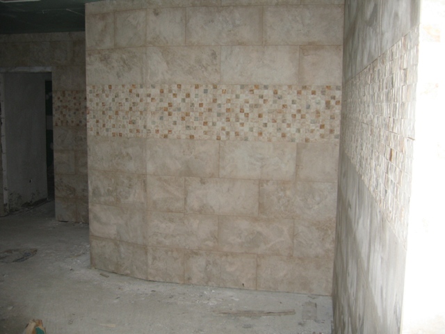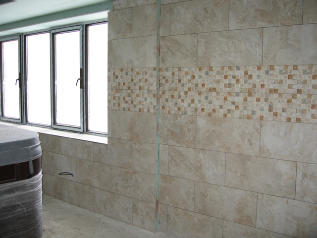 Most of the swimming pool area has now been tiled using a beautiful cream stone effect tile with mosaic border and it is starting to look really nice. The ventilation for this swimming pool area was also installed recently.